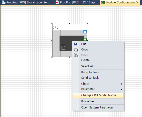 CPU 모듈을 우클릭하여 Change CPU Model Name를 클릭한다.