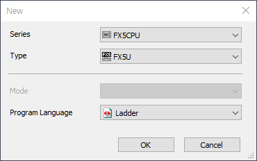 나는 FX5UC 콤팩트 타입의 작은 CPU를 사용한다. 그래서 FX5U로 프로젝트로 생성한다.