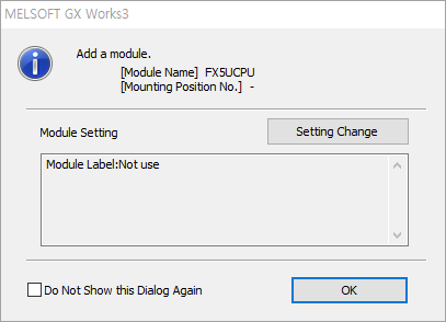 새프로잭트 설정은 FX5 CPU, FX5U로 되어있는걸 그대로 OK 눌러 생성한다.