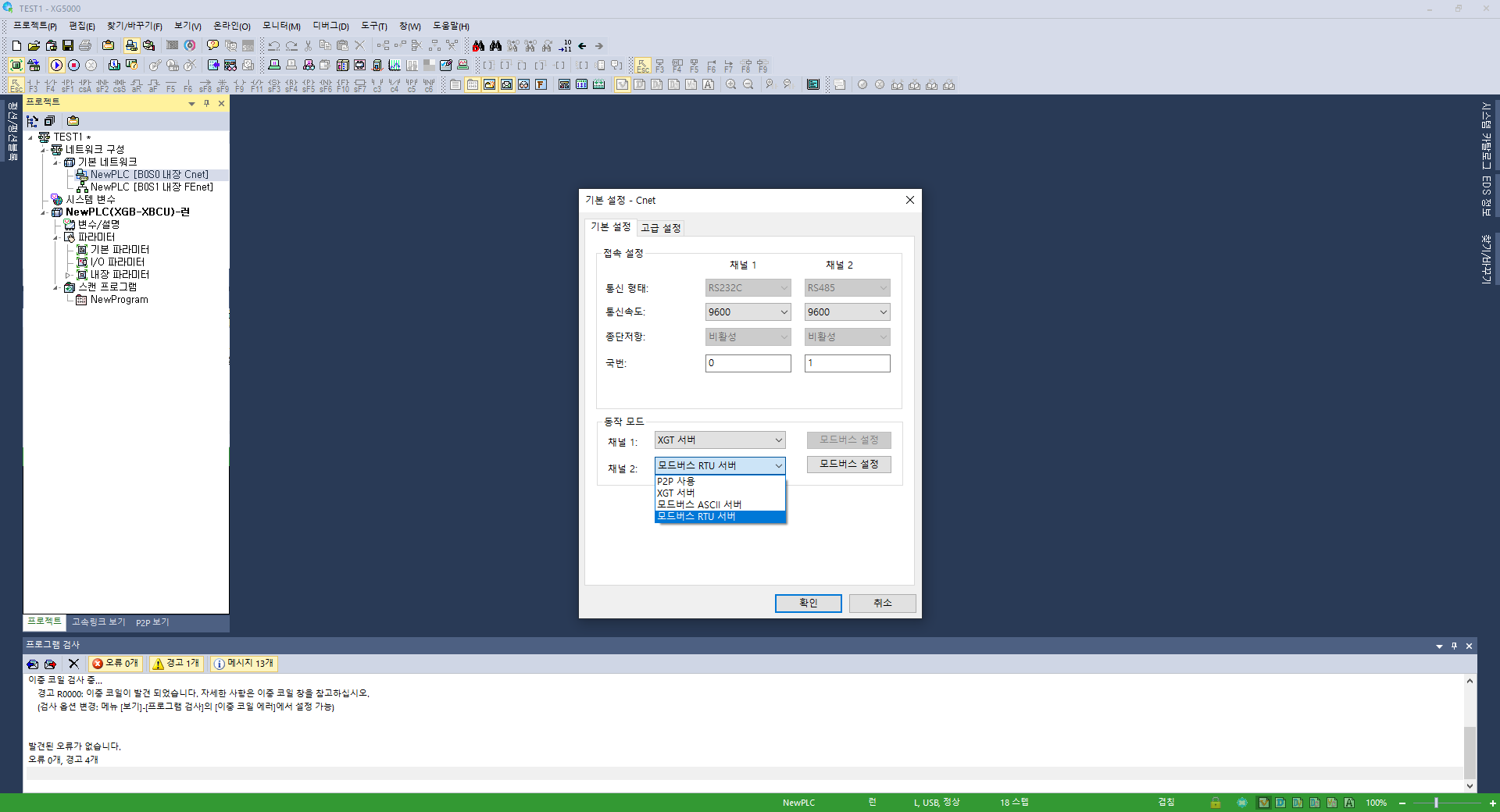 여기까지가 LS산전 PLC의 기본 설정이다.