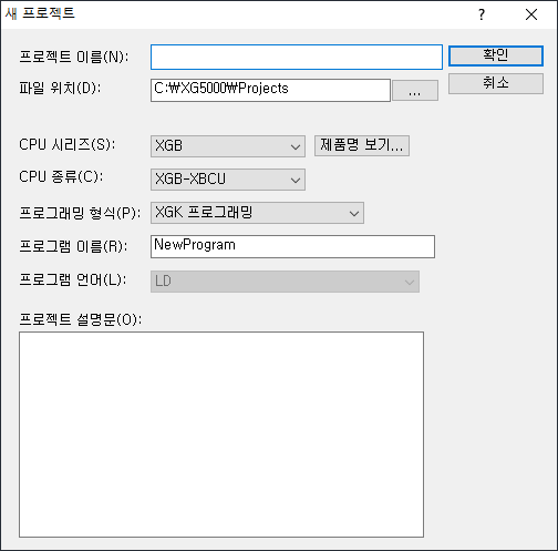 XG5000 새 프로잭트 설정화면