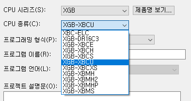 우선 CPU 시리즈를 XGB로 선택하면 CPU 종류에 저렇게 항목이 나온다.